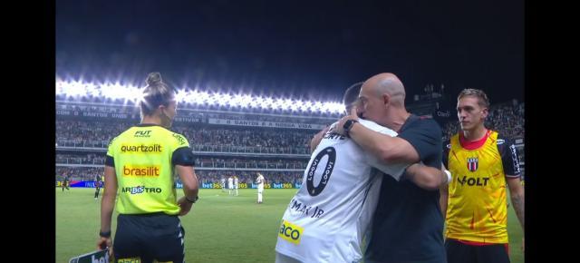 上半场伤停补时5分钟,常规45分钟结束时,内马尔离开替补席,站到场边,让人觉得他当时就有可能被桑托斯主教练佩德罗·凯希尼亚派上场。但最后,现场球迷只是空欢喜一场。上半场开始前,两队主力还没从更衣室出来,内马尔就站到了场边准备上场。上半场开始,内马尔迎来重返桑托斯后的首秀。之前,内马尔曾说过,以他目前的身体状态,他最多能踢30分钟球。但考虑到球迷的热切期望,桑托斯教练组决定让他踢45分钟。