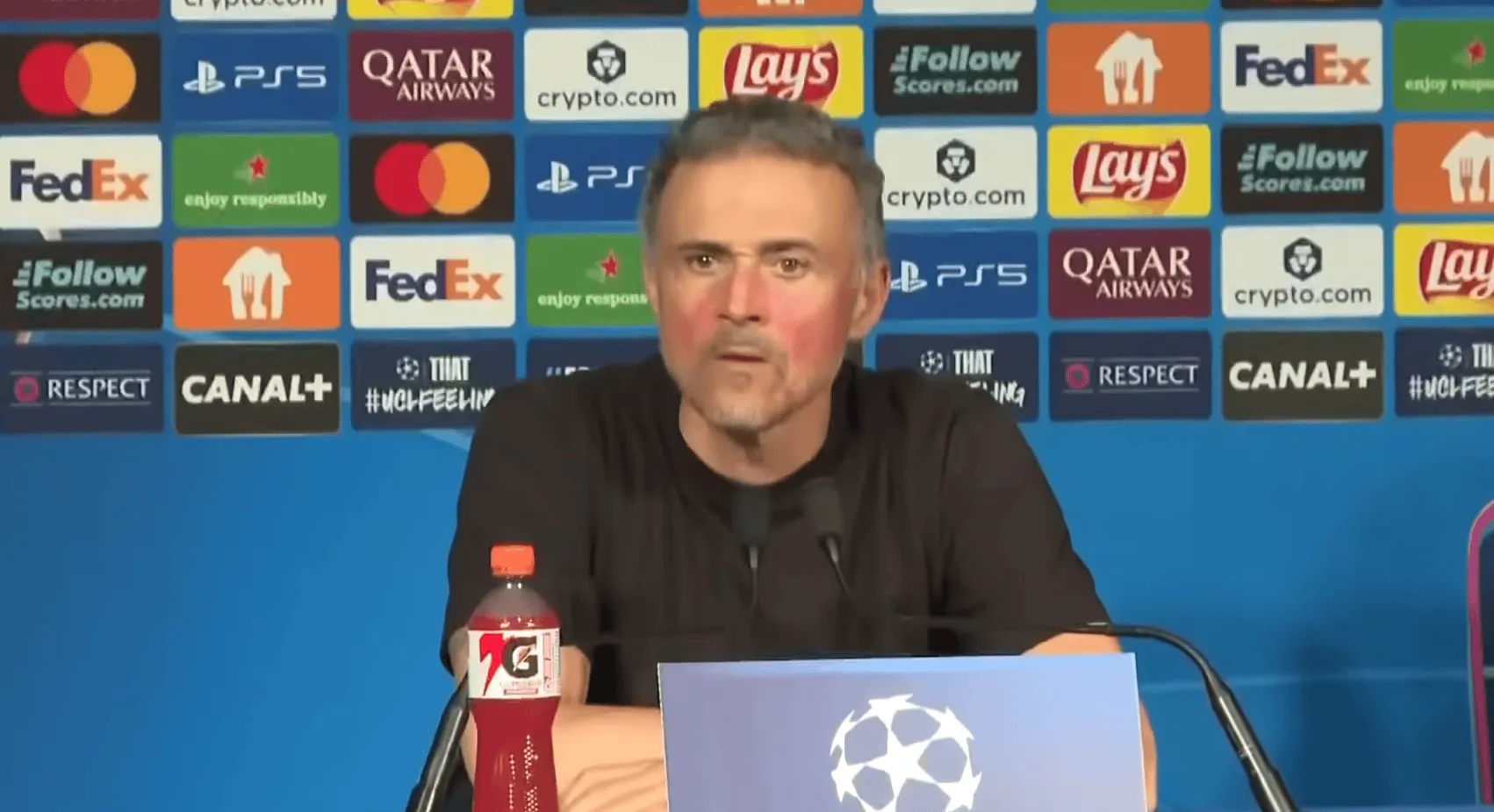 虎扑04月09日讯 巴黎圣日耳曼主教练路易斯-恩里克出席2-0击败利物浦的欧冠赛后发布会。