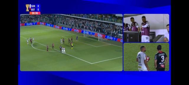 比赛进行到第32分钟,桑托斯11号前锋吉列尔梅左路传中,博塔福戈后卫禁区内手球。吉列尔梅传中,博塔福戈后卫先是用脚挡了一下。倒地后,皮球打到他手臂上。那个手球该不该判点球?直播的巴西电台解说员认为不该,因为皮球是在不可避免的情况下打到博塔福戈后卫的手臂上。但回看VAR后,主裁判还是给了桑托斯点球。主队9号前锋蒂基尼奥·苏亚雷斯主罚,将球打进对手大门右下死角,桑托斯1比1领先。