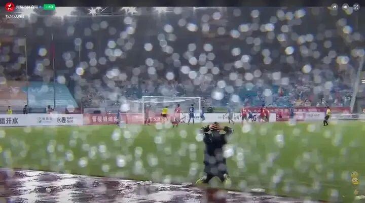 常州奥体中心,常州队0:4不敌南京队,球员们在倾盆大雨中拼到抽筋,助理教练恽铮那记抱头跪地成了全网泪目的“世界名画”。